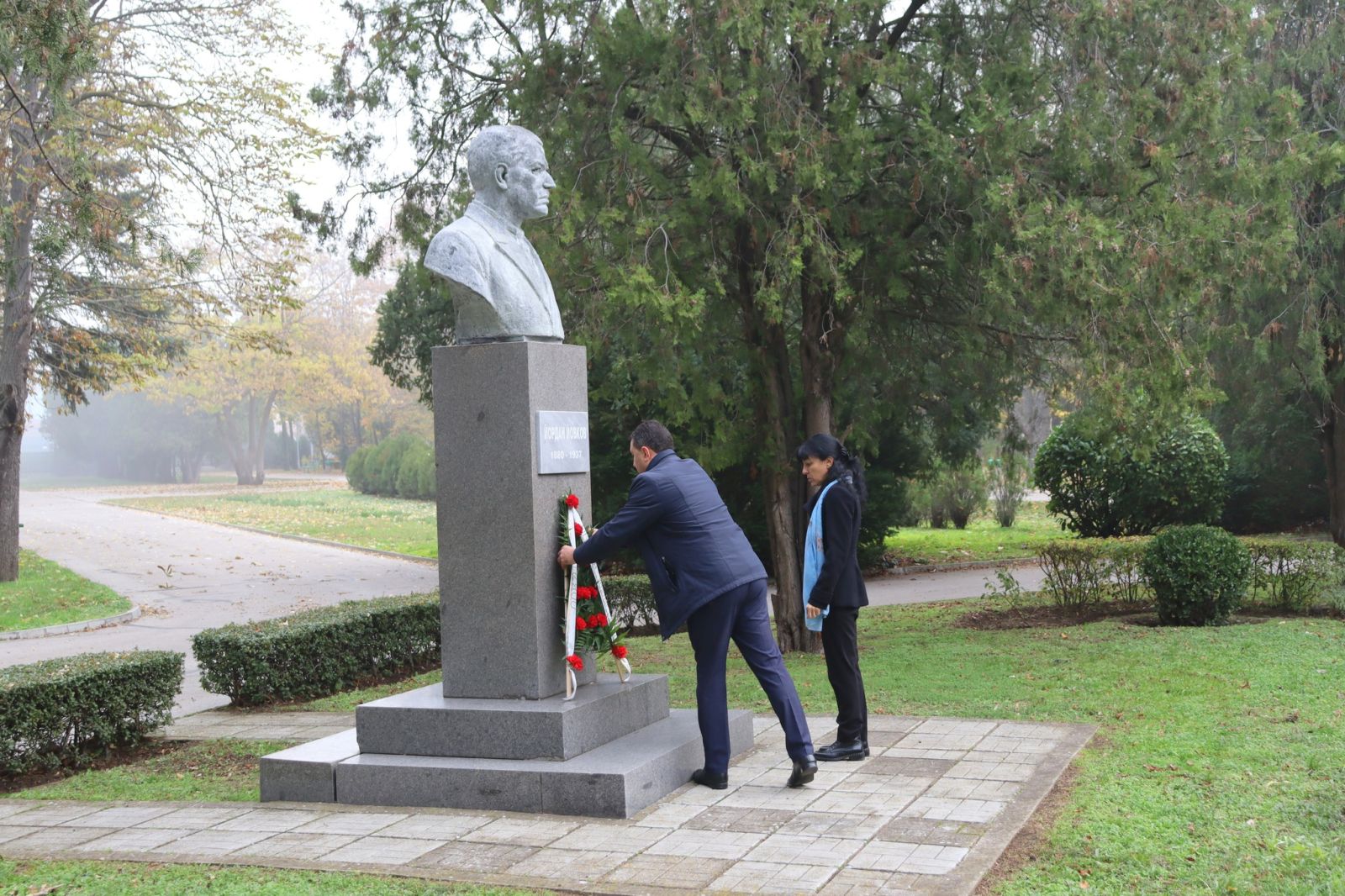 Кметът на Община Генерал Тошево Валентин Димитров, заедно със своя екип, служители на общинската администрация, бивши и настоящи учители, както и читалищни дейци, поднесоха венци и цветя пред паметника на Йордан Йовков в градския парк.