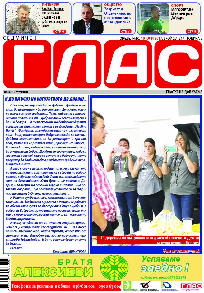 Започна жътвата в Добруджа. Какви са очакванията на земеделците за тазгодишната реколта. Отговори на тези въпроси търсим в новия брой на вестник „ГЛАС”.