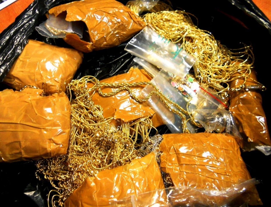 От "тайника" на първата са иззети 4 пакета с 69 гривни, обеци, пръстени, колиета с общо тегло 624 грама. Други 5 пакета със 73 златни накита с тегло 528 грама са открити в сутиена на втора жена в автобуса, а още 3 пакета с общо 50 накита от злато с общо тегло 397 грама са били укрити в сутиена на трета пътничка.