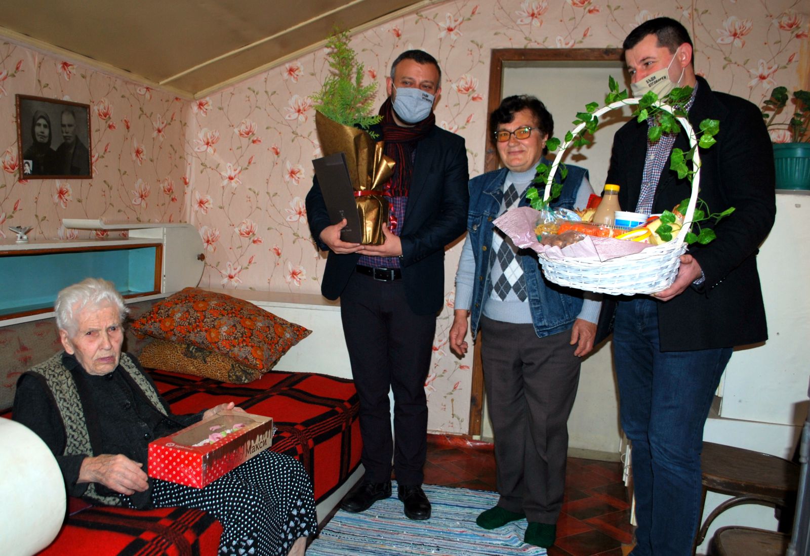 двамата заместник-кметове Деян Димитров и Румен Мунтянов я посетиха, поздравиха я и поднесоха подаръци от името на кмета.