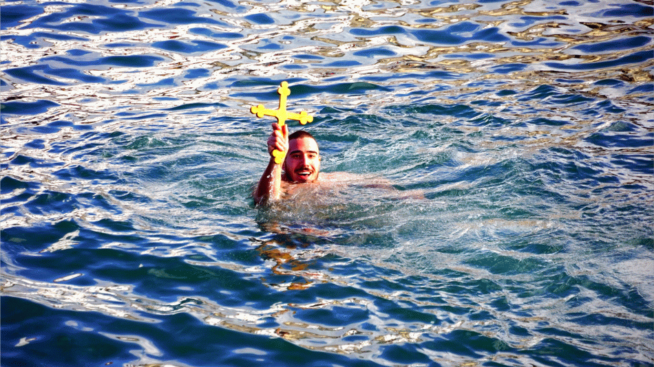 Ритуалът по спасяването на кръста се състоя след празнична литургия в храм „Свети Георги” в града, от където тръгна и литийно шествие, което по традиция приключва пред Морска гара.