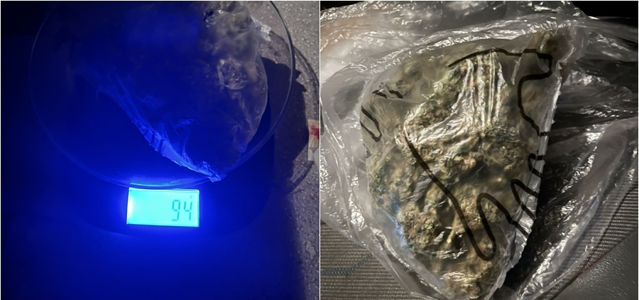 При последвалите процесуално-следствени действия е установено, че изхвърленият пакет съдържа 94 грама суха тревна маса, която при полеви тест реагира на канабис.