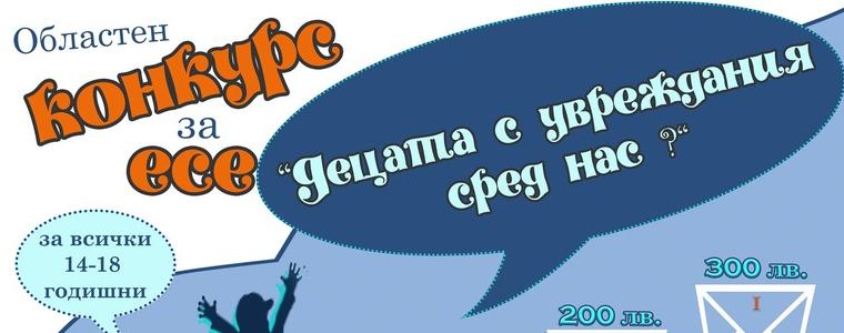 27 есета сa получени в рамките на Областния конкурс, организиран от Фондация „Лумос“и Младежки център - Добрич. Темата на конкурса - „Децата с увреждания сред нас?“, провокира младите хора, на възраст 14 – 18 години, да мислят върху един от актуалните проблемите в нашето общество. В получените есета,те задават критични въпроси, споделят личните си впечатления от общуването с тези деца, не спират да търсят възможните варианти за толерантност към различните. В конкурса се включиха представители на училища от Добрич, Тервел, Шабла и Каварна. Есетата са предоставени на компетентно жури с председател Сашо Серафимов - председател на Дружеството на писателите в Добрич и членове: Петранка Божкова – филолог, поет, Член на Съюза на българските писатели и на Съюза на българските журналисти, Мария Методиева – филолог,председател на фондация „Св. Николай Чудотворец“, Снежана Ванкова – филолог, координатор Фондация „Лумос“ –гр.Добрич. Резултатите ще бъдат обявени до 25 ноември, на сайта на Младежки център – Добрич. Наградите ще бъдат връчени на събитие на Фондация „Лумос“ и Младежки център – Добрич.