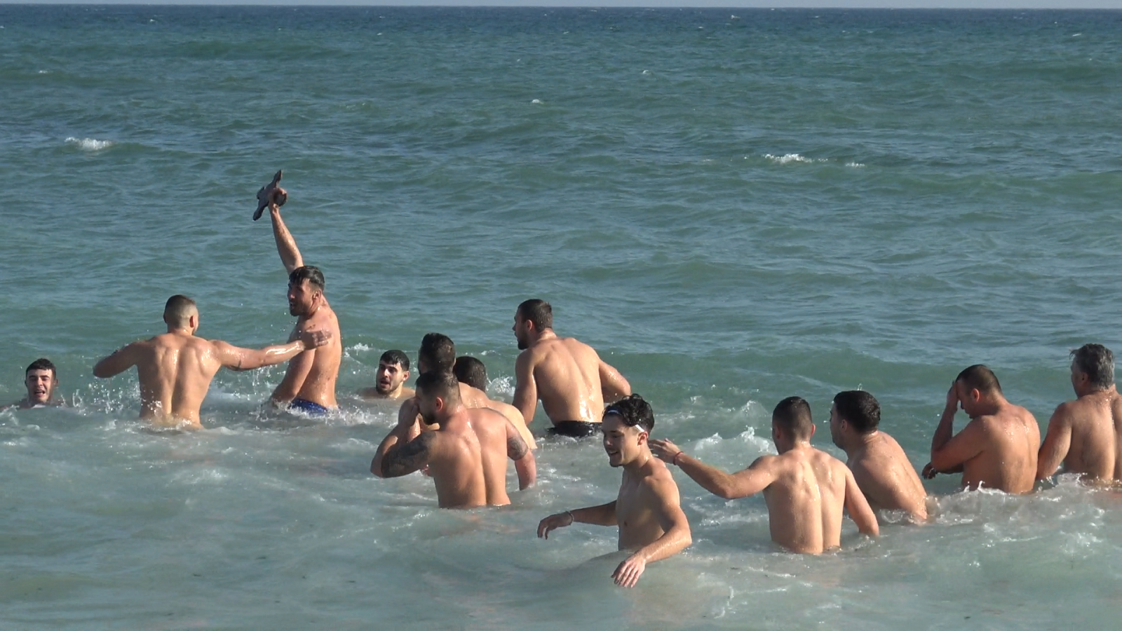 Тринадесет мъже се хвърлиха в морето край село Крапец в надпреварата за Богоявленския кръст. 32-годишният Петър Петров, който е родом от селото, успя да го извади от водата.