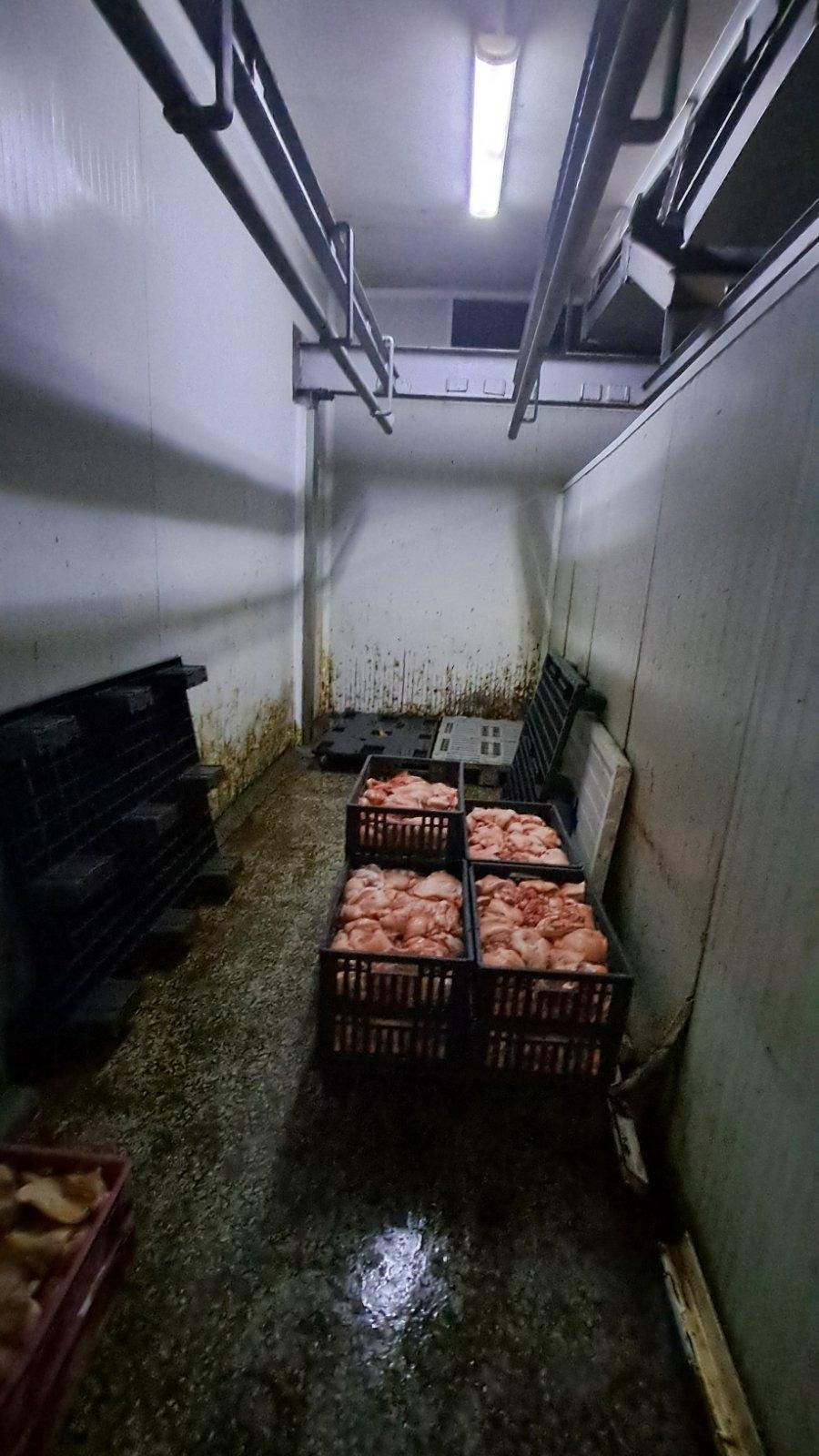 Различни видове месо – сурово и преработено – са съхранявани в едни и същи хладилни камери, без ясно разграничение и при компрометирани хигиенни условия. В отделни помещения са открити замърсени повърхности, лошо поддържани стени и подове, както и липса на топла вода и необходимите средства за измиване и дезинфекция.