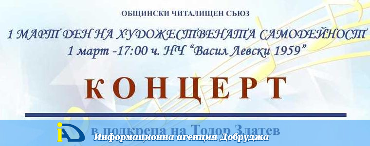 На Деня на художествената самодейност, Община Балчик и Общинският читалищен съюз организират концерт с благотворителна кауза в подкрепа на Тодор Златев – жител на града, страдащ от гноен хидраденит. Тържеството ще се проведе на 1 март от 17 часа в Народно читалище „Васил Левски 1959“.