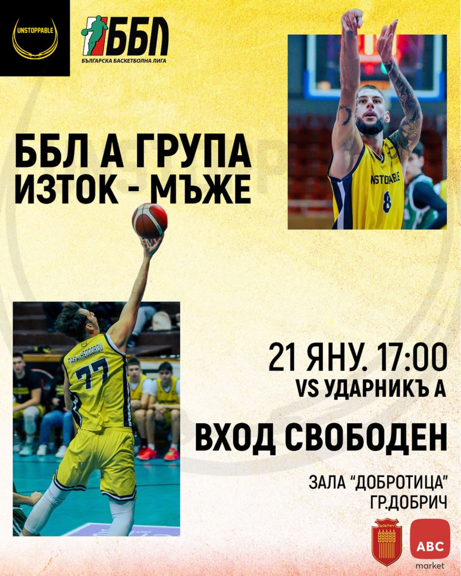 В края на седмицата добричкият тим ще се включи и в турнира за Купата на Баскетболната лига. Осминафиналите ще се играят в зала „Абритус“ в Разград, където „Ънстопабъл“ ще се изправи срещу „Шоутайм“ Варна. Мачът е на 24 януари от 12:00 часа.