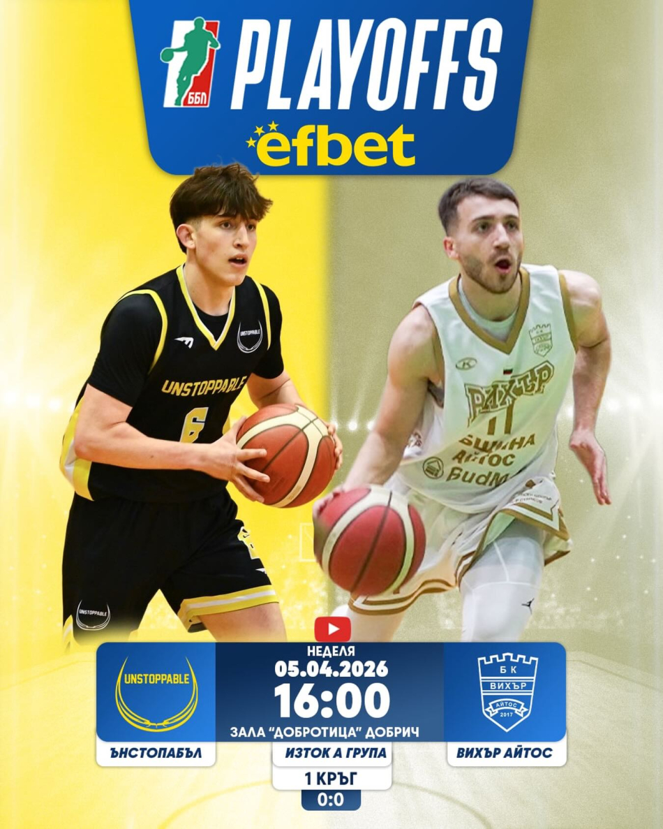 Петият в класирането от редовния сезон в Българска баскетболна лига – зона Изток, Вихър (Айтос) ще бъде първият съперник на Ънстопабъл в плейофите. Със силната си серия във втората част от сезона тимът от Добрич завърши с една позиция по-нагоре в таблицата и си извоюва домакинско предимство в четвърфиналните мачове.