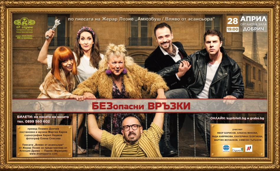Комедията „БЕЗопасни връзки“ на Сатиричен театър „Алеко Константинов“ гастролира в Добрич ва 28 април.Спектакълът ще бъде представен от 19.00 часа на сцената на зала „Добрич“- органова.