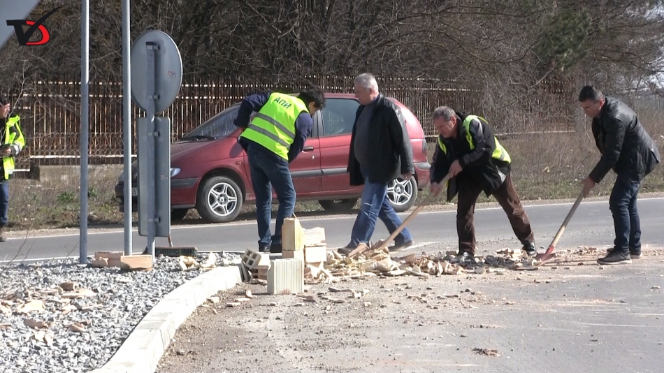 Нашият екип сигнализира до началника на Областно пътно управление Георги Стратиев, който за минути изпрати екип. Служителите на пътното почистиха и изметоха платното, а тухлите бяха откарани със специализиран трактор.