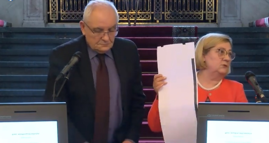 ЦИК представи бюлетината, с която ще гласуваме на 4 април. Тя е дълга около 60 см, а броят на кръгчетата в нея зависи от броя на кандидатите, което пък зависи от размера на МИР – който е максимално 36.