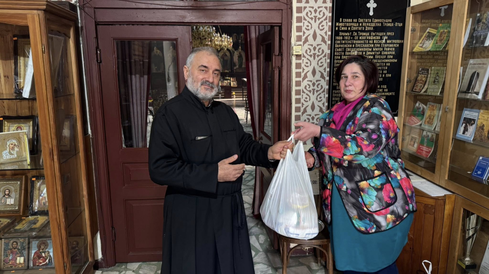 Великденските пакети са предадени на отец Велико в храм „Света Троица“ в Добрич, откъдето ще бъдат разпределени към хора в нужда, за да внесат радост и празнично настроение в домовете им.