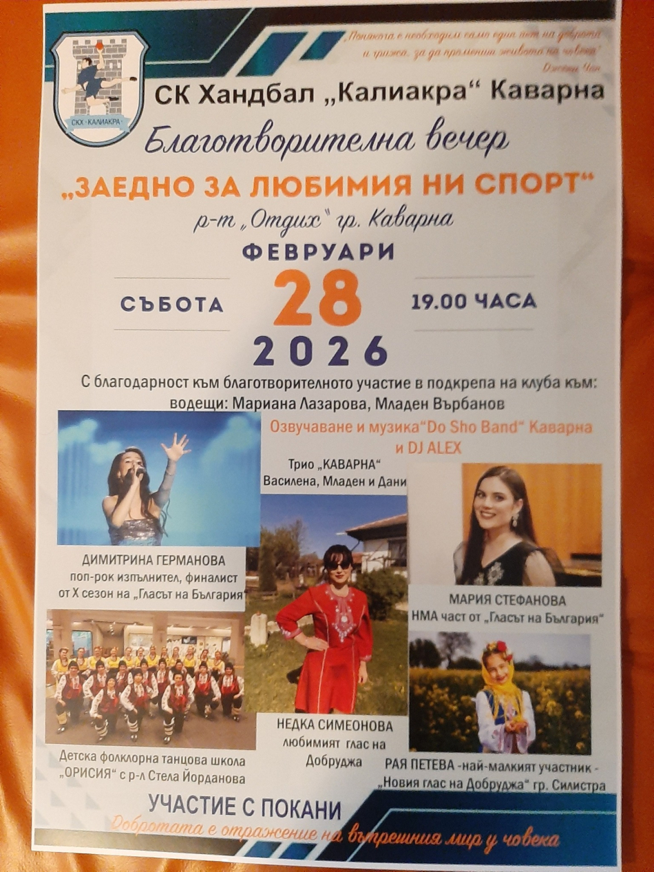 За втора поредна година в Каварна ще се проведе благотворителна вечер под надслов „Заедно за любимия ни спорт“.