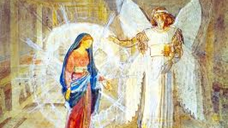 Дева Мария, изпълнена с недоумение, поради свръхразумната тайна, разкрита й от Божия служител, със смирение и послушание изрекла думите: "Ето рабинята Господня; нека ми бъде по думите ти" (Лука 1:38).