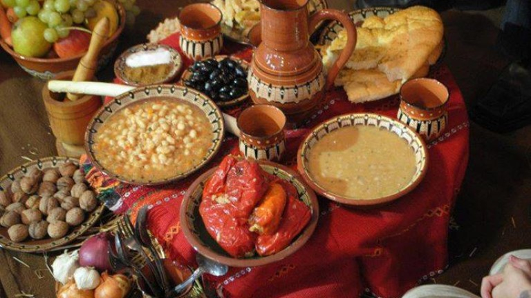 Върху трапезата се нареждат нечетен брой ястия - 7, 9 или 11. Сред тях са пълнени чушки с ориз, сърми, боб, леща, варено жито, баница с тиква, ошав. Според традицията, колкото повече са ястията, толкова по-богата ще е годината.