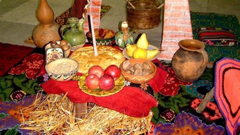 Върху трапезата се нареждат нечетен брой ястия - 7, 9 или 11. Сред тях са пълнени чушки с ориз, сарми, боб, леща, варено жито, баница с тиква, ошав. Според традицията, колкото повече са ястията, толкова по-богата ще е годината.