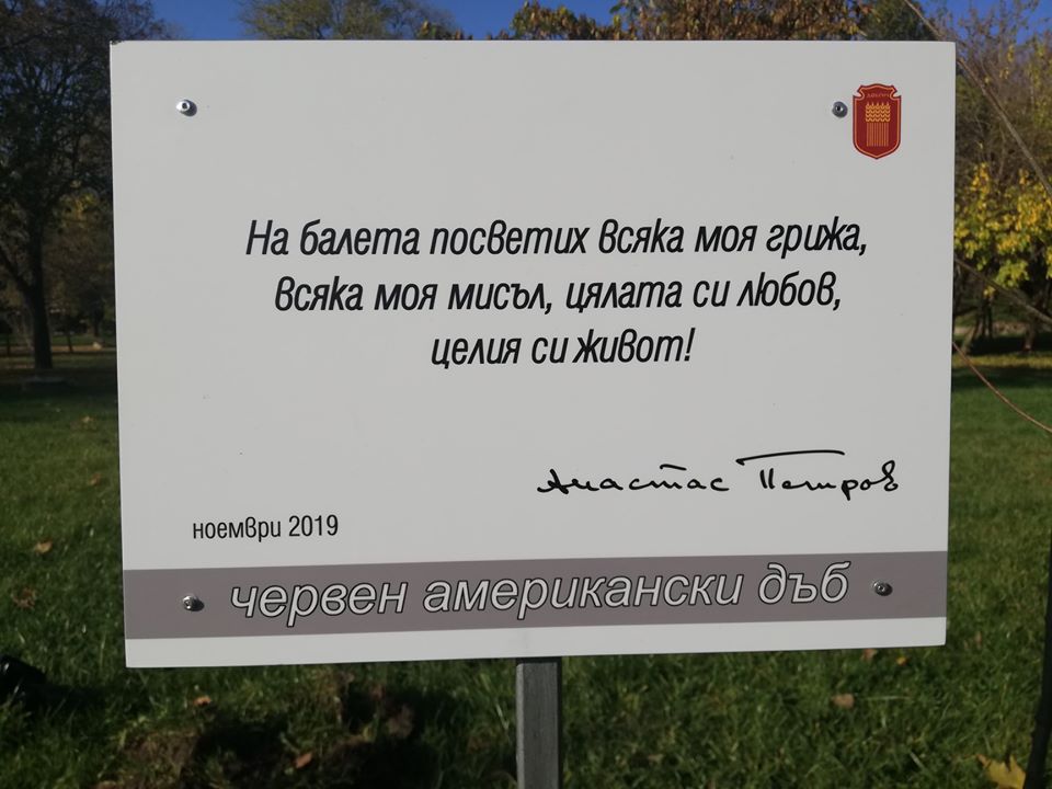 Община Добрич продължава инициативата за засаждане на дървета по повод годишнини на именити наши съграждани. Днес кметският екип засади червен американки дъб в градски парк „Свети Георги“ в чест на Анастас Петров. На тази алея бяха засадени вече дръвчета от този вид в чест на Дора Габе и Адриана Будевска. По този начин признателните потомци изразяват своето уважение и гордост към личности, които са родени в Добруджа и я носят пламенно в сърцата си. До дръвчетата са поставени табели с известни мисли на Анастас Петров, Дора Габе и Адриана Будевска. Червеният дъб, който бе засаден днес е по повод 120 години от рождението на основателя на българския балет Анастас Петров, роден на 1 октомври 1899 г. в Добрич. В Добрич се провежда Националната среща на младите балетни изпълнители „Анастас Петров". Началото е положено през 1982 година. Всяка среща е едно вдъхновено съревнование, което призовава младата балетна смяна да изяви най-доброто от таланта си. Това е своеобразен жив паметник на творческото дело на Анастас Петров - първоучител и първомайстор, патриарх на българския балет, роден и израснал в Добрич. И тези вълнуващи срещи са израз на признанието, което българските творци от всички поколения пазят към делото на Анастас Петров, съобщават от Община Добрич.