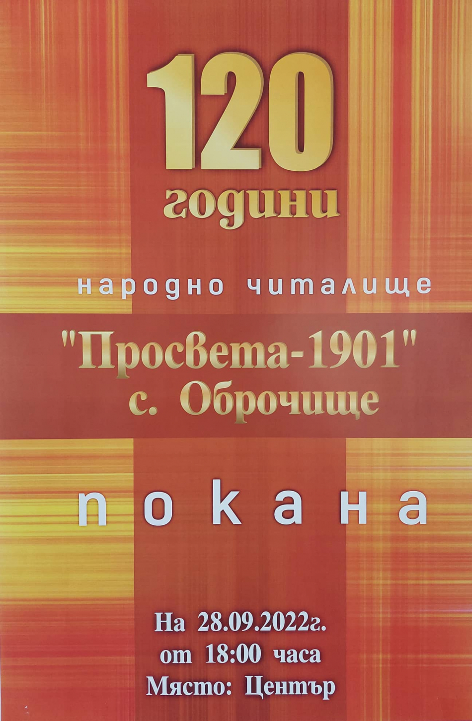 Народно читалище „Просвета 1901“ в с. Оброчище, ще отбележи с концерт 120 години от своето създаване. Събитието е насрочено за 28 септември от 18.00 часа в центъра на селото. В празничната програма ще участват съставите към читалището и Професионален фолклорен ансамбъл "Добруджа". На събитието ще бъдат отбелязани и 20 години хор "Текенски напеви " към читалището в Оброчище.