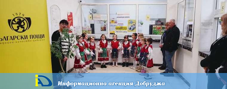 В навечерието на Лазаровден деца от група „Мики Маус“ при ДГ № 10 „Слънчице“ зарадваха служителите на Централната Пощенска станция в Добрич с празнично лазаруване. Малчуганите, с учителки Татяна Желязкова и Диляна Йовева и директор Силвия Тачева, поздравиха пощальоните и касиерите с песни, танци и стихчета, като нарекоха за здраве и берекет.