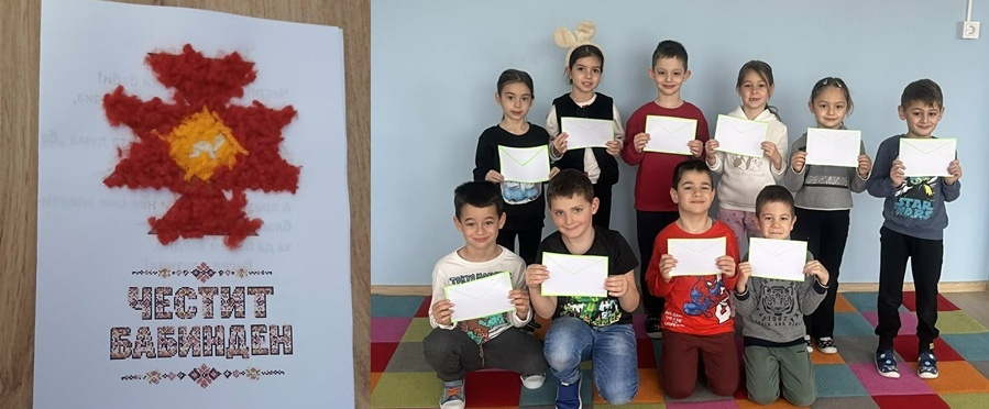 По повод празника Бабинден деца от ДГ „Славейче“, участници в дейността „Народни традиции и обичаи“, изработиха празнични картички за 35 читалища, намиращи се в селата на община Добричка. Всяка картичка е създадена с много старание и носи дълбоко символично послание.