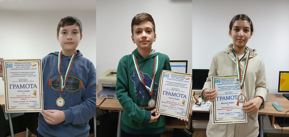 Отлично представяне записаха възпитаници на Клуб „Компютър арт“ при Младежки център - Добрич, които спечелиха два златни и един бронзов медал от Международния конкурс за компютърна рисунка и колаж „Творчество без граници“ – Хасково 2026.