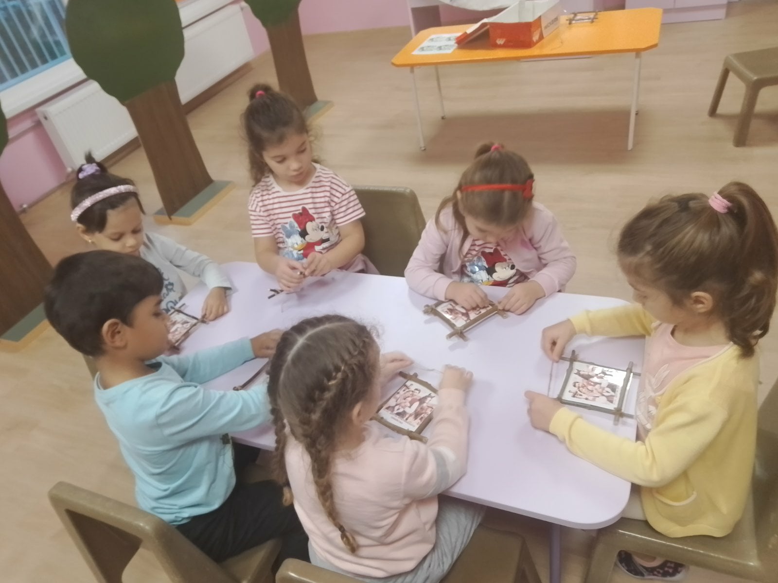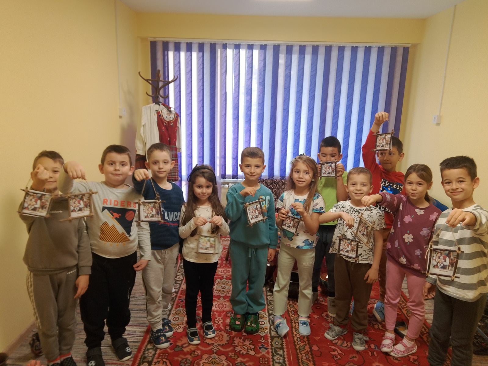 Малчуганите изработиха ръчно рамка от дървени пръчки, в която поставиха снимка на традиционно българско семейство – символ на топлина, съхранени ценности и приемственост.