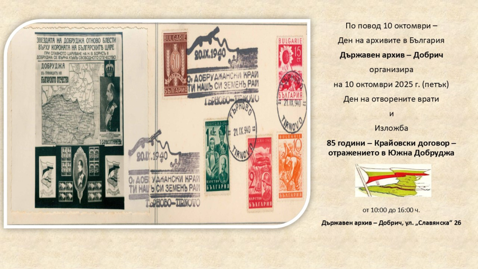 Ден на отворени врати организира Държавен архив – Добрич на 10 октомври. Поводът е Денят на архивите в България, който се отбелязва на тази дата.