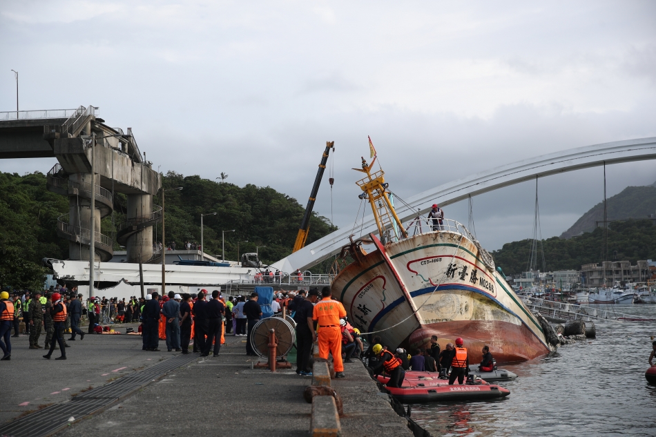 Мост се срути в североизточен Тайван, като пострадаха мнозина (според различни сведения – от 10 до 14 души). Нараняванията са вследствие на падането му върху риболовни лодки и бензинов танкер, акостирали под него.