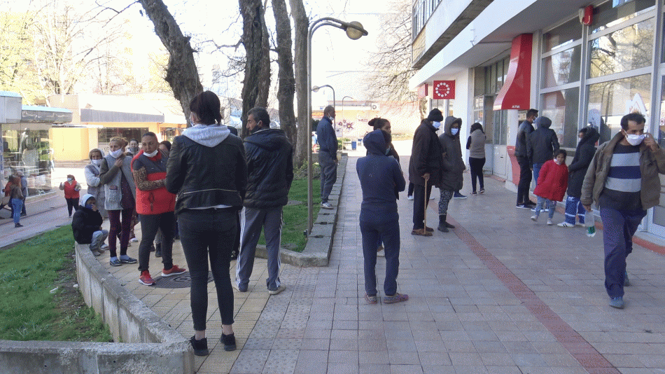 Десетки роми чакат с часове пред офиса на Инвестбанк в Добрич, за да получат детски и интеграционни добавки. Ромите не спазват отстояние един от друг и не носят маски, видя екип на МГ“Добруджа“. От банката обясниха, че групата е била много по-голяма и не са спазвали изобщо правилата през целия ден. Наложило се няколко пъти да викат полиция. В офиса влизат само по двама и това бави останалите с три до пет часа. Ромите много държаха чрез нашата медия да се обърнат към премиера Бойко Борисов и да го поканят да види какво става по селата. Децата ни няма да умрат от коронавирус, ще умрат от глад, каза в обръщението си към министър председателя млада жена.