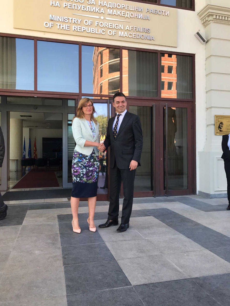 "Благодаря, Екатерина, благодаря и на целия твой екип. Свършихме страхотна работа. Договорът ще произведе приятелство и близост. Днес е исторически ден". С тези думи министърът на външните работи на Република Македония Никола Димитров се обърна към заместник министър-председателя по правосъдната реформа и министър на външните работи на Република България Екатерина Захариева. Двамата разговаряха днес в Министерството на външните работи в Скопие.