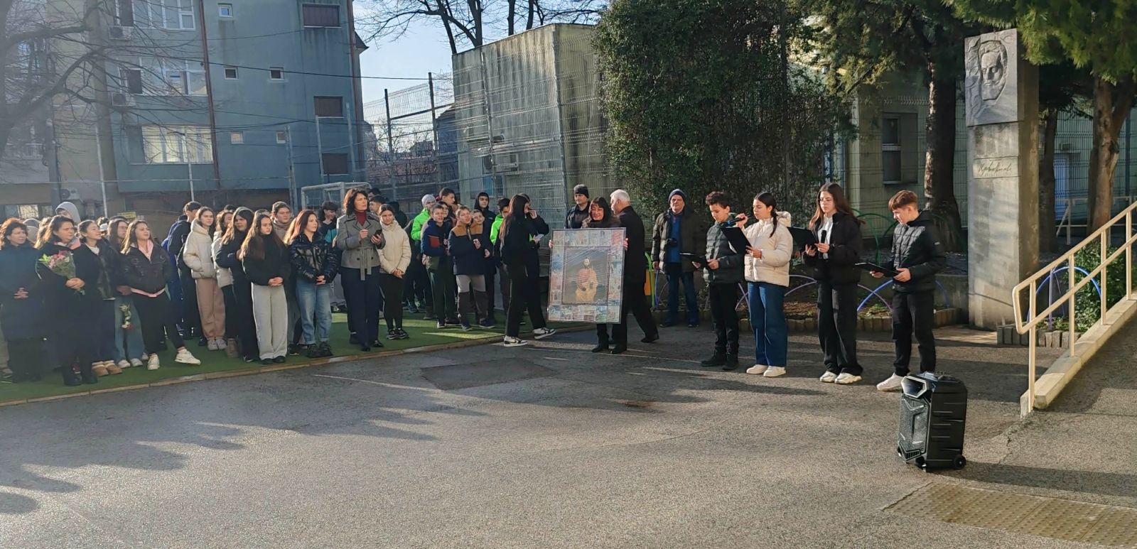 От името на Добруджанския научен институт, председателят му Борис Спасов подари на училището реплика на картината „Ботевото евангелие“, дело на проф. Пламен Вълчев.