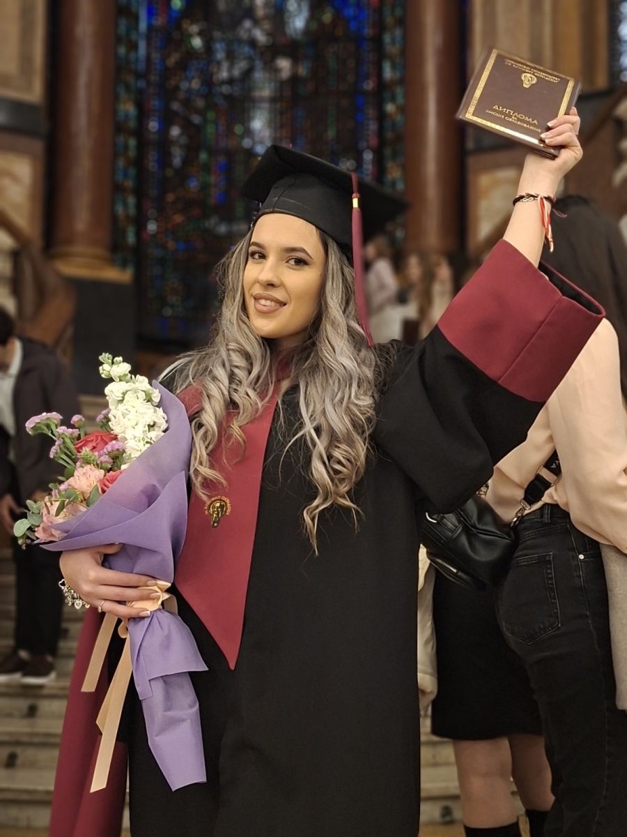 Емоцията от успеха, постигнат в годините на обучение, я залива с пълна сила по време на церемонията по дипломиране. Мислех, че няма да съм толкова развълнувана, но когато започна церемонията, вълнението дойде. Чувствах се горда със себе си., За нея италианският не е просто език. Според мен италианският е езикът на страстта, на емоцията. Той не просто носи информация, а е съставен от чувства, от жестове, интересът й към културата, литературата и историята вървят ръка за ръка с филологията.