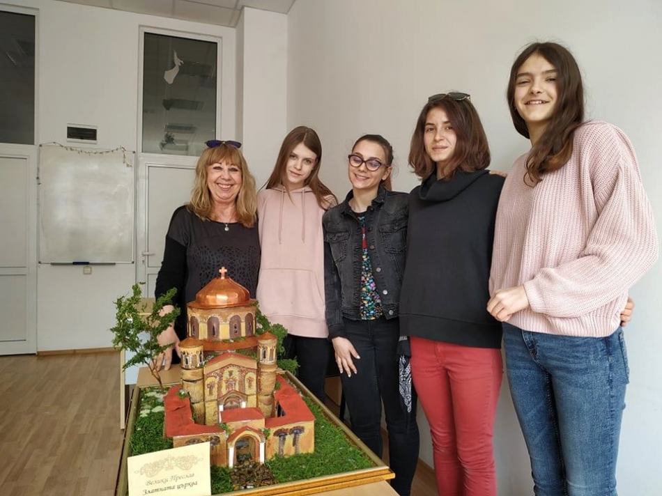 Под ръководството на преподавателя по изобразително изкуство г-жа Олга Иванова екип от млади художници – Пресиана Стефанова (8 в кл.), Габриела Ангелова (8 в кл.), Александрина Янкова (9 г кл.) и Лидия Лазарова (10 б кл.), изработи макет на Златната църква във Велики Преслав. Храмът е центрична постройка, ротонда, която се състои от три основни елемента, кръгъл наос, разделен на 12 ниши, правоъгълен притвор с кръгли кули и почти квадратен атрий. Смята се, че постройката е издигната между 870 и 875 година по време на царуването на Симеон Велики. Изработването на макета е процес не само на творене, но и на учене, споделят от училището. По думите на Олга Иванова: „Това са уроци по ценности. Цар Симеон добре е разбирал, че истинското могъщество се крие не толкова във военната мощ и икономиката, колкото в културата.“