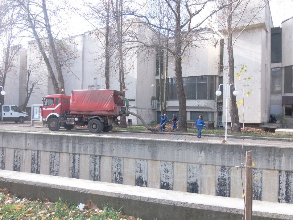Така се чистят листа. Работници на А.С.А - България днес събират листата по ул.М.Горки непосредствено до ДТ"Йордан Йовков". Дни наред листата бяха трупани на купчини и се разпиляваха. Дойде моментът да се прибират рационално. На място бяха и шефовете на фирмата и под строг контрол работата бе свършена. Междувременно фас подпали купчина листа точно пред подземният паркинг. Добре е, че наблизо нямаше кола. Пушек и огън и от една единствена купчинка може да стане опасно само с една искра и пред погледа на работещите наблизо.