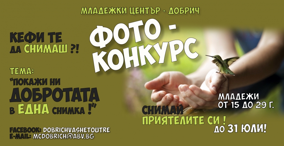 Младежки център – Добрич обявява фотографски конкурс за младежи на възраст от 15 до 29 години.