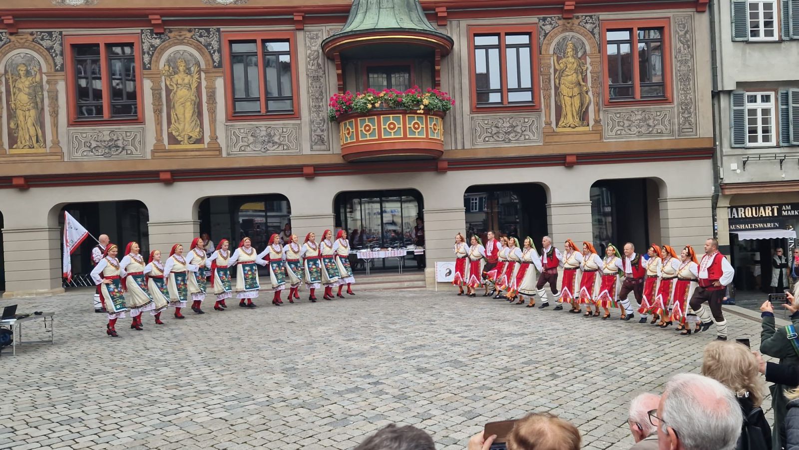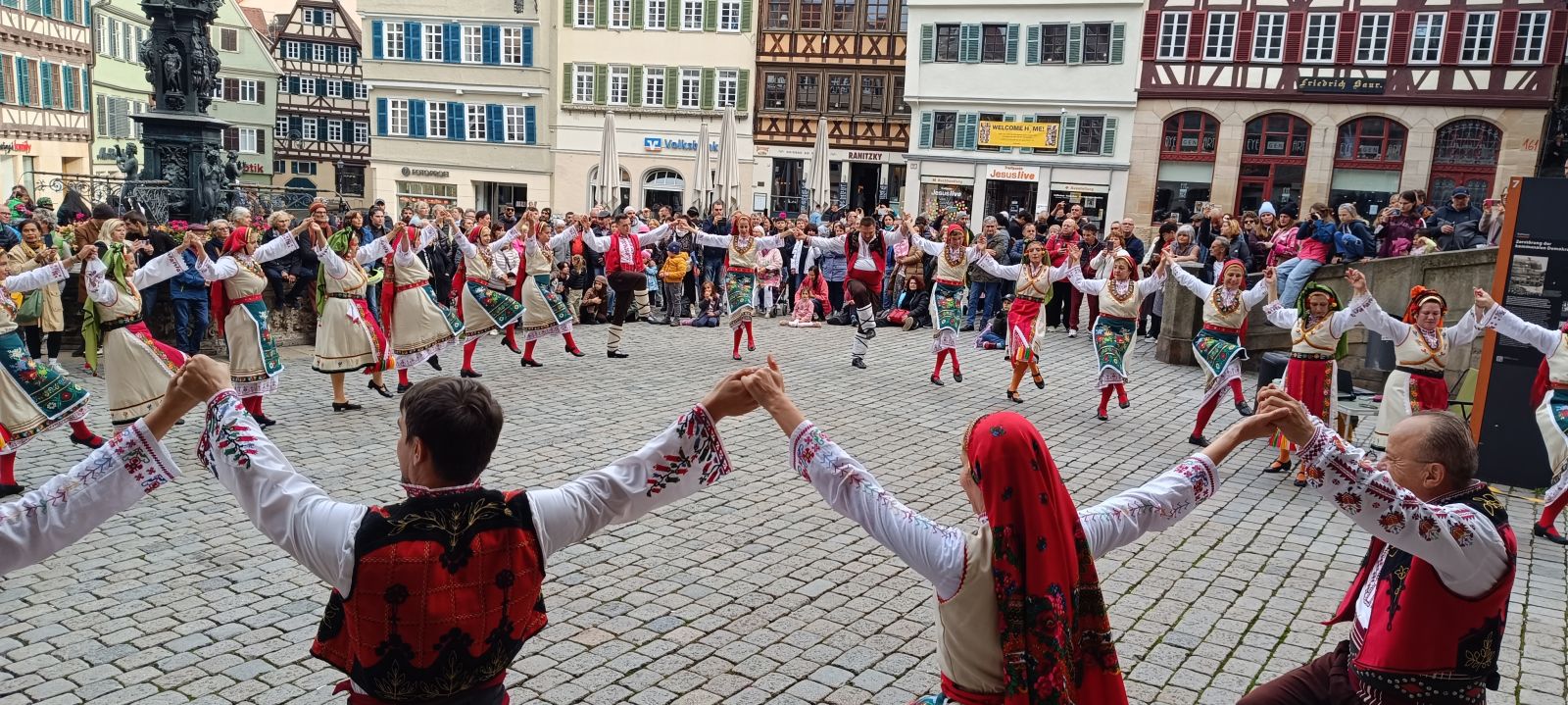 Двата състава представиха 3-часова програма в центъра на Тюбинген, която включваше танци и хора от всички фолклорни области на България.