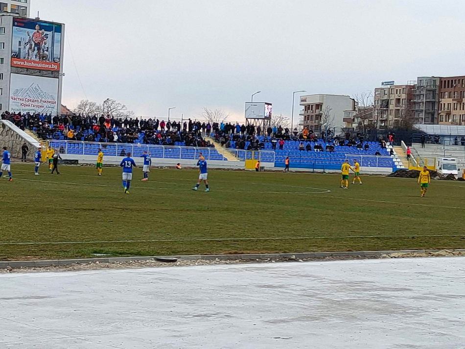 Лъчезар Йорданов откри за гостите в 39 мин., а Андриан Димитров в 62 мин. отново показа голмайсторския си нюх и покачи на 2:0. Домакините стигнаха до почетен гол чрез Велислав Боев в 77 мин.