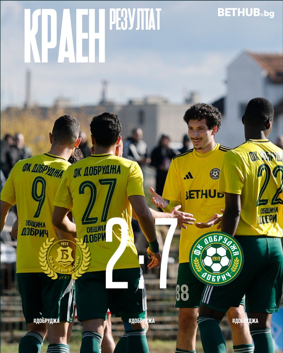 Добруджа се класира за осминафиналите в Купата на България, след като разгроми като гост третодивизионния Бдин (Видин) със 7:2.