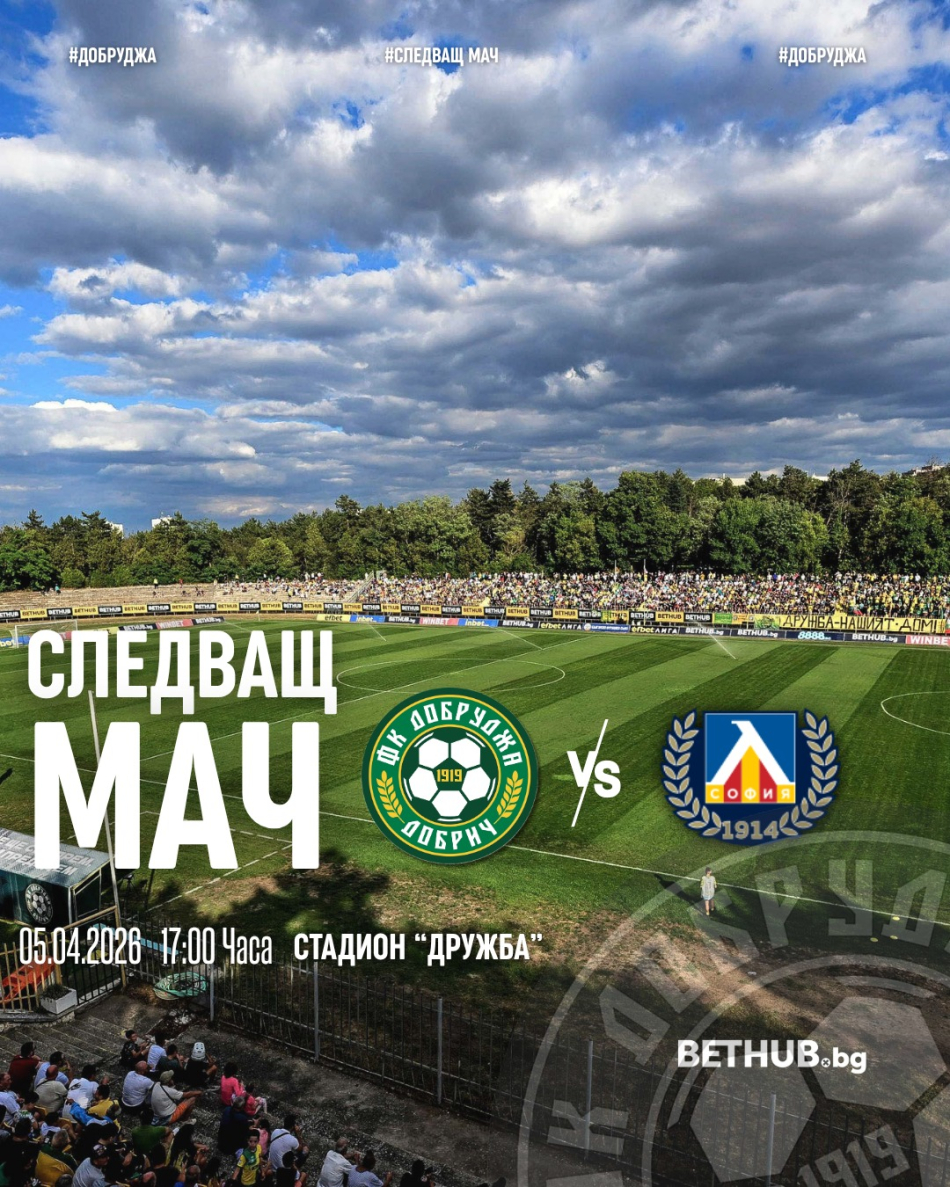 От петък започва предварителната продажба на билети за предстоящия мач на Добруджа срещу Левски. Мачът с лидера в класирането в efbet Лига е на 5 април от 17.00 часа на стадион „Дружба“ и се очаква да бъде сред най-важните за домакините.