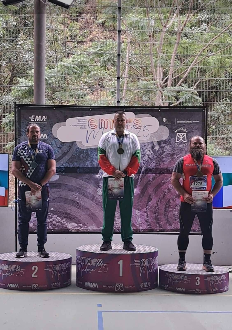 Добричлията Галин Костадинов спечели златния медал в тласкането на гюле на Европейското първенство за ветерани във Фуншал, Мадейра.