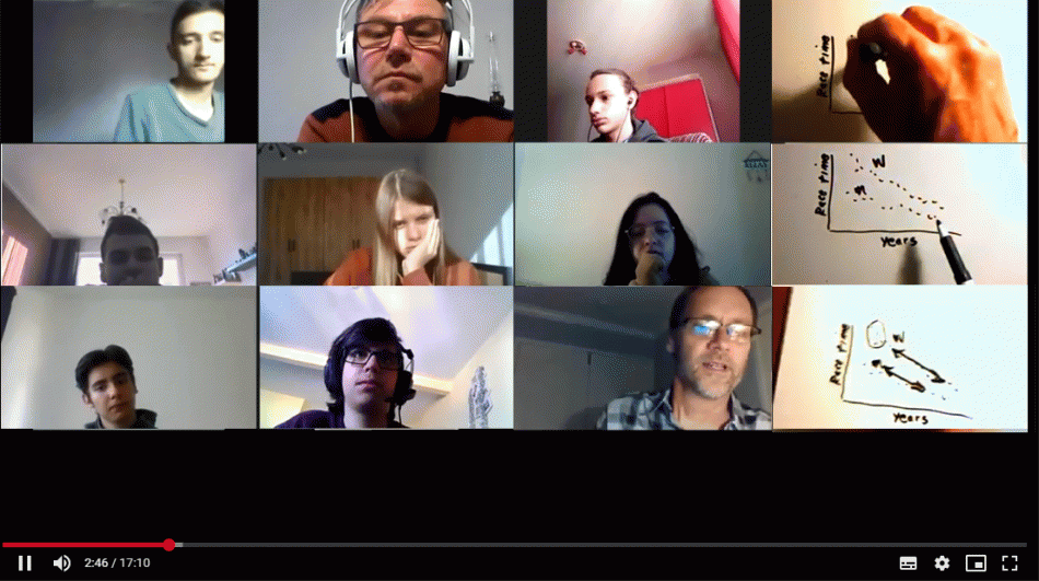 Една от математическите задачи, поставени на момчетата и момичетата от елитното добричко училище, бе свързана с резултатите на участниците в Бостънския маратон през тази година. Въпросът, на който търсиха отговор, е ще успеят ли жените да настигнат мъжете напред във времето по издръжливост. При обсъждането на три графики, бе поставено и философското питане можем ли въобще да предвидим бъдещето. В контекста на световната пандемия този въпрос предполага може би еднозначен отговор.