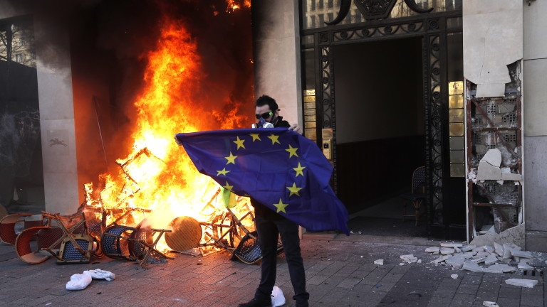 Оскверняване на знамето на ЕС във Великобритания не е престъпление, но Франция направи оскверняването на трикольора, наказуемо с глоба до 7500 евро или шест месеца затвор.