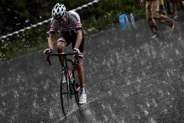 Градушката не пощади и зрителите покрай пътя. На тях им се наложи да се крият под близките дървета, докато колоездачите се опитваха да останат на велосипедите си, преминавайки измежду ледени късове.
