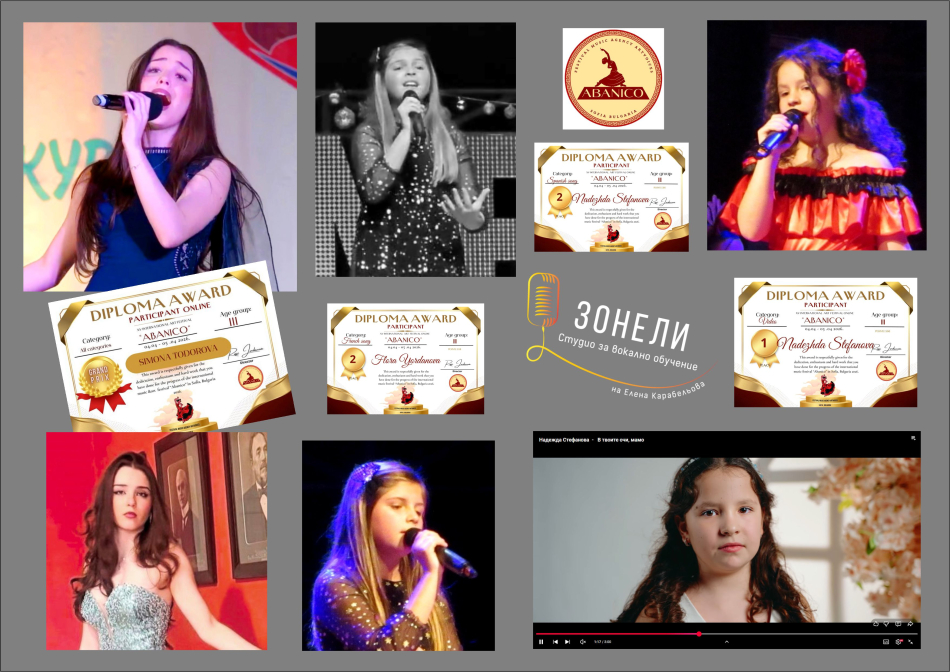 Студио за вокално обучение „Зонели“ от Добрич спечели четири престижни отличия от онлайн конкурса на Международния арт фестивал Abanico.