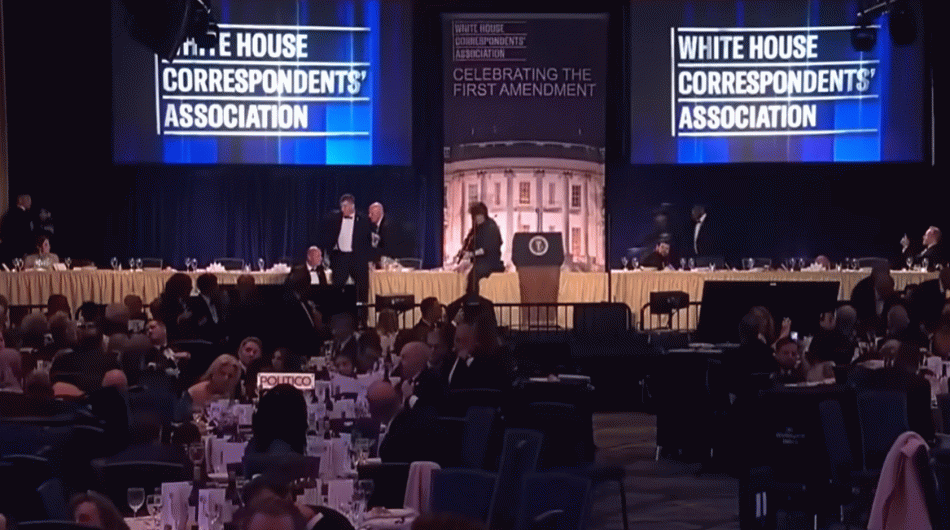 Служители на Тайните служби и други власти препълниха банкетната зала на хотел "Вашингтон Хилтън“, докато стотици гости, вечерящи със салата бурата, се навеждаха под масите.