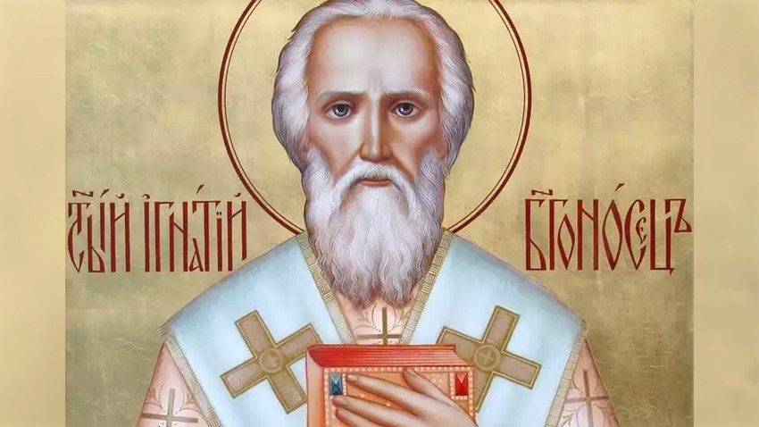 Игнатий Богоносец бил ученик на Свети Йоан Богослов. По-късно става епископ на Антиохийската църква, където първи въвежда пеенето на божествените песни на два клира - хора, прието по-късно и от другите християнски църкви. Паството му го нарича Богоносец, защото той самият казвал, че "носи Бога в себе си, в душата си". Заради вярата си е бил осъден на смърт от римския император Траян. Загива мъченически, разкъсан от лъвове.