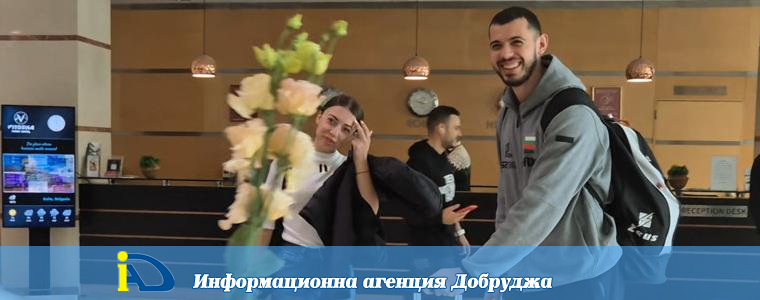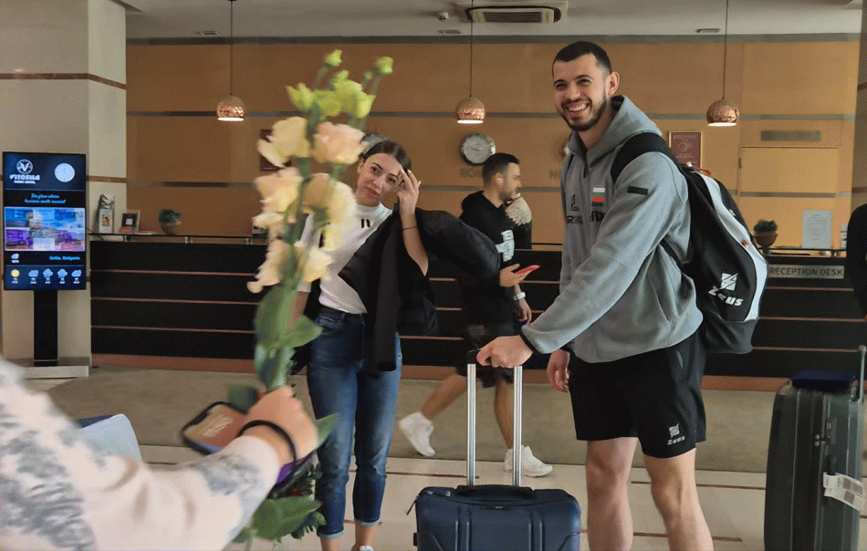 Както винаги, с широка усмивка на лице, роденият в Добрич волейболист прие цветето и се снима с чаровните посрещачки.