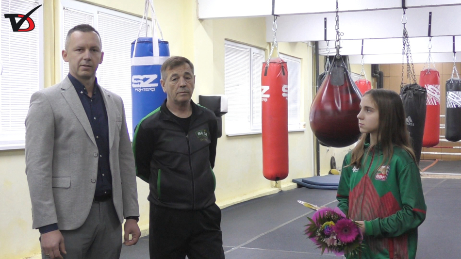 Бронзовата медалистка от европейското първенство по бокс за ученици – Ана Добрева, бе поздравена днес от председателя на ПК „Спорт и младежки дейности“ Йордан Иванов. Събитието се състоя в новата зала на БК „Борис Георгиев – Моката“ в Спортното училище, където учи 13-годишната боксьорка.
