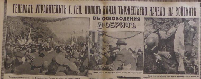 „Може би под влиянието на радостта и силната емоция, съвременниците на освобождението на Добруджа, които тогава са били деца, а днес са възрастни хора, твърдят, че ген. Попов влиза в Добрич на бял кон. Истината е, че той влиза в Добрич с военен автомобил. Колата спира на варненския път, там генералът е посрещнат с хляб и сол от Комитета по посрещането, начело с тогавашния кмет Кирил Старцев, след което продължават пеша до центъра на града, където има изградена трибуна. Докато стигнат центъра, на няколко пъти ген. Георги Попов е спиран и понасян на ръце от щастливите добричлии”, разказва Живко Марков.