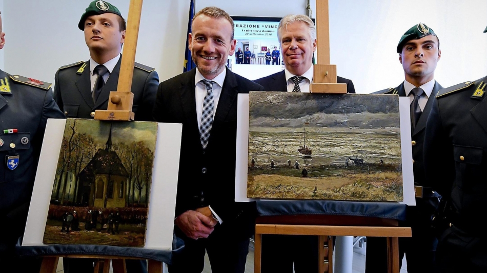 Картините на Ван Гог бяха открити в Кастеламаре ди Стабия, не далеч от Неапол, благодарение на сложно и дълго разследване, попаднало на следа на наркотрафик. Стойността им възлиза на около 100 милиона долара. Те бяха откраднати преди 14 години от музея "Ван Гог" в Амстердам. Едната е "Плажът на Шевенинген", а другата "Изходът от протестантската църква в Нюенен". Били скрити в сграда в Кастеламаре ди Стабия, за която се предполага, че е свързана с местната мафия камора и международния трафик на дрогаq начело на който е укриващият се в Дубай Рафаеле Империале.